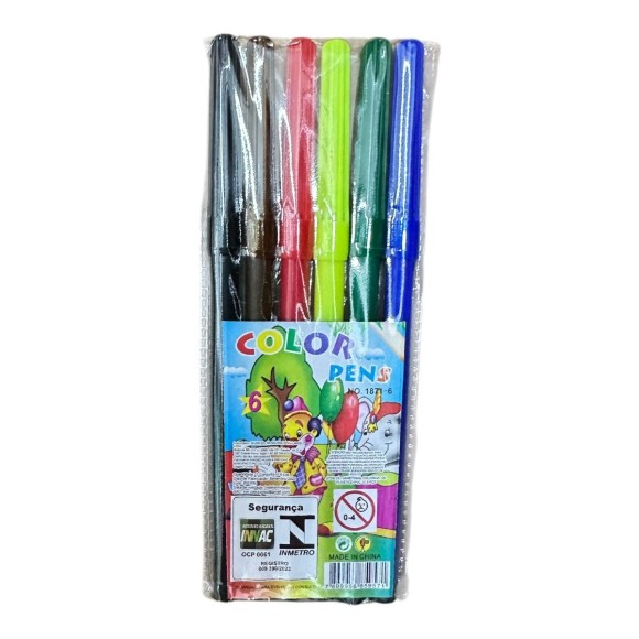 Canetinha hidrocor com 6 cores.