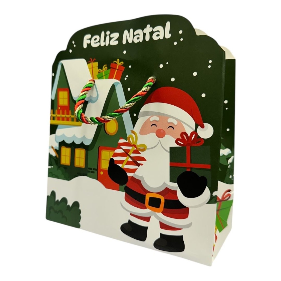 Com ilustração natalina e alça de poliéster, essa linda sacola é resistente e tem ótimo acabamento.
