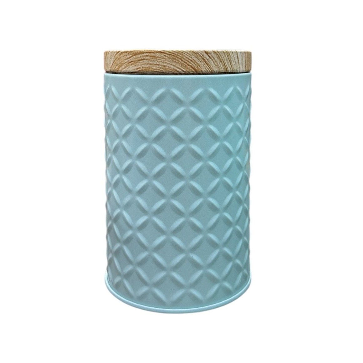 Lata para armazenamento, decorativa com tampa de metal imitando madeira